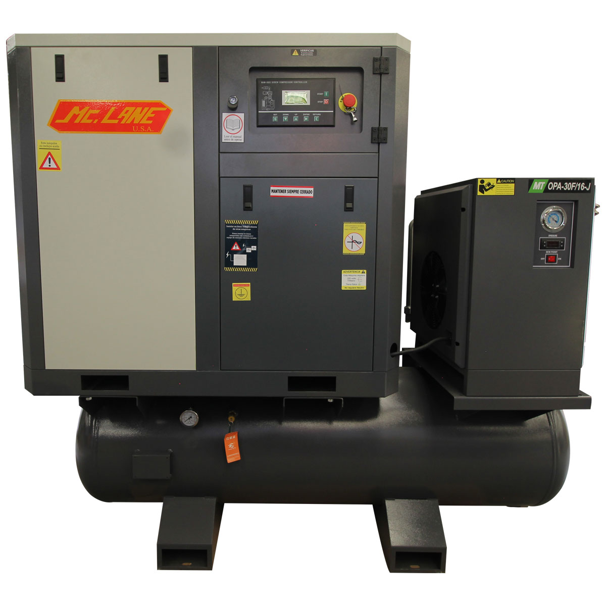 Es un compresor que usa dos tornillos rotativos para comprimir aire. Ofrecen compresión continua, lo que resulta en una operación más suave y menos ruidosa.